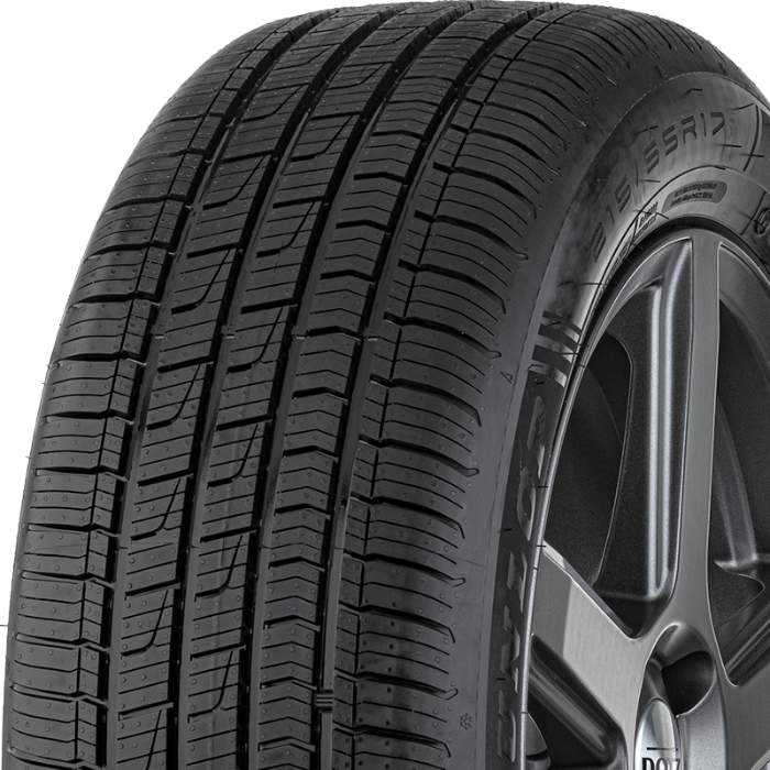 The tread has an asymmetric construction and is a compromise between summer and winter tyres. Thanks to the high capacity grooves and radial edges, water and slush are well drained. The dangerous phenomenon of aquaplaning is also reduced. The Sport All Season provides high performance and confident handling on dry surfaces thanks to its sporty construction elements - ribbed tread and strong belt.
