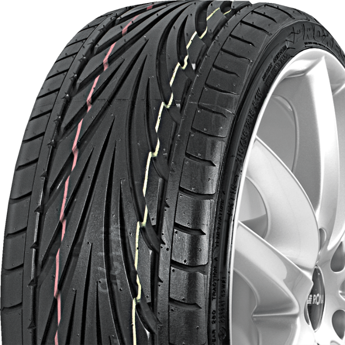 The Toyo Proxes T1-R is the successor to the Toyo Proxes T1-S. The model is noted for its directional V-shaped tread pattern. Its design means that the tyre quickly disperses water and functions exceptionally well even on very wet surfaces. One advantage of the model is its high rigidity, which means that the tyre copes equally well on dry roads and guarantees good grip when going round corners. Thanks to the use of a higher silica content, irregular wear has been reduced, which means that the tread wears evenly on every side of the tyre, thus extending its lifetime. The silica added to the rubber compound also has another role since it improves performance on wet surfaces, ensures the tyre's flexibility whatever the weather and helps maintain optimal performance on dry roads. But these are not the only advantages of the material used in its construction. It also helps reduce rolling resistance, resulting in lower fuel consumption and minimising CO2 emissions.